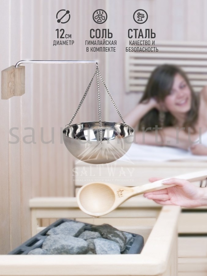 Чаша заполняется различными ароматическими компонентами (травами, гималайской солью, эфирными маслами, разведенными в воде) и подвешивается к потолку или специальному креплению в стене над раскаленными камнями.