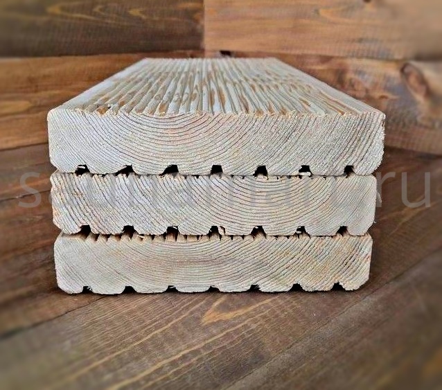 Террасная доска — это износостойкий материал для укладки на открытых пространствах: террасах, верандах, дорожках. Изготавливается из древесины (лиственница, кедр) или древесно-полимерного композита (ДПК). Имеет рифлёную поверхность для предотвращения скольжения. Террасная доска из лиственницы — это прочный и долговечный материал, устойчивый к влаге, гниению и перепадам температур. Благодаря высокой плотности древесины, она идеально подходит для укладки на открытых пространствах: террасах, балконах, возле бассейнов. Лиственница не требует сложного ухода, со временем становится только прочнее и приобретает благородный серебристый оттенок. Это экологичный и эстетичный материал, который сочетает в себе природную красоту и практичность. Профиль Вельвет: Такой профиль обеспечивает антискользящий эффект, что делает доску безопасной для использования у бассейнов, на террасах и в других влажных зонах. Сорт AB: Качественный материал с минимальным количеством сучков и небольшими дефектами. Она сочетает в себе доступную цену и хорошие эксплуатационные характеристики, подходит для отделки террас, беседок и садовых дорожек. Незначительные изъяны не влияют на её прочность и устойчивость к влаге, гниению и перепадам температур. Это практичный вариант для тех, кто ищет баланс между качеством и стоимостью.