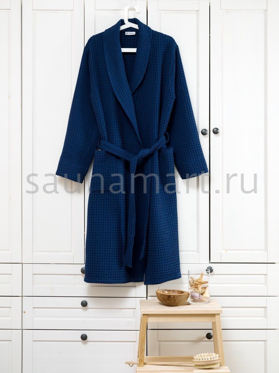 Халат вафельный PandaHug Оrlando темно-синий капюшон 52-54