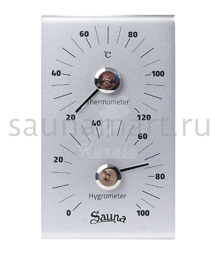 Термогигрометр состоит из двух циферблатов: термометр и гигрометр. Градуировка шкалы гигрометра варьируется в пределах от 0 до 100 %. Градуировка шкалы термометра варьируется в пределах от 0 до 120 градусов по Цельсию. Измерительный предназначен для настенного размещения. Банная метеостанция это стильное интерьерное решение подойдет еще и для ванной комнаты и балкона.