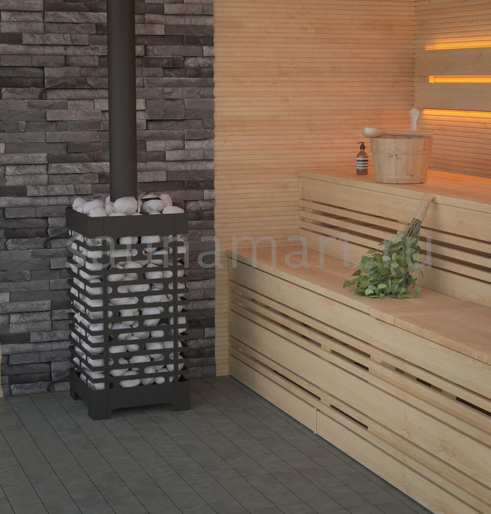 • Большая масса камней, закладываемых в сетку-кожух печи, обеспечивает стабильность температуры в парилке и является мощным парогенератором.