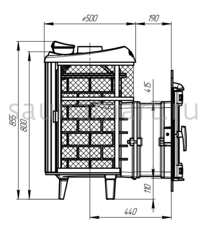 - Каменка из нержавеющей стали: 3 мм (AISI 439)