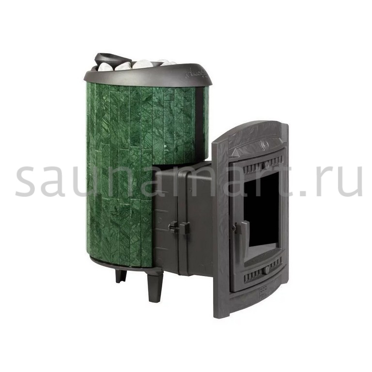 Практичная и компактная модель. Ламели по периметру внешней каменки не только обладают хорошими теплонакопительными свойствами, но и придают печи оригинальный внешний вид.