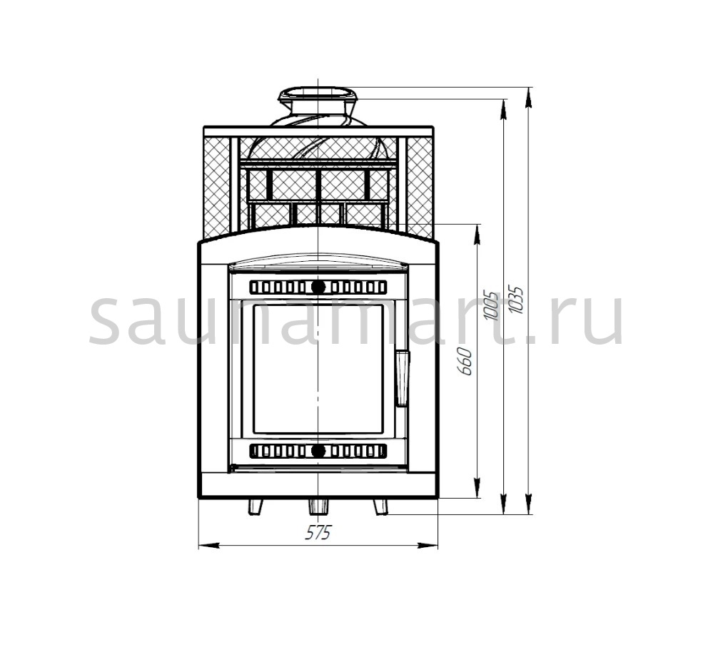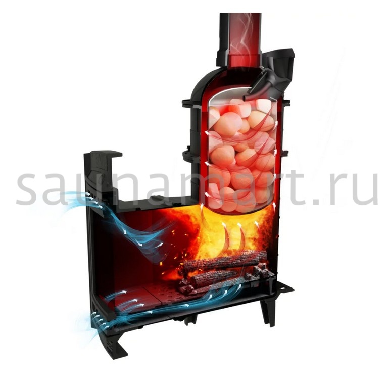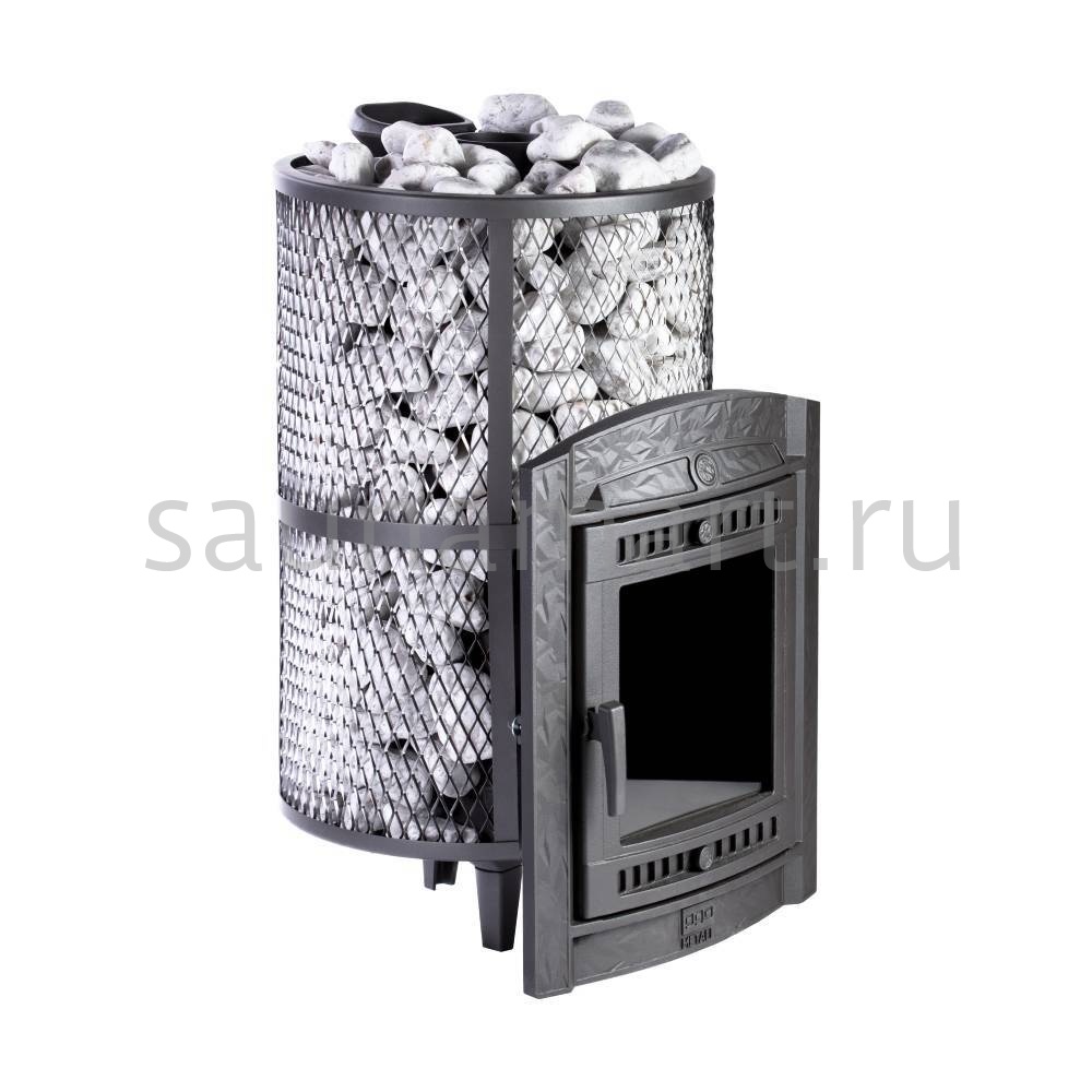 Модель с увеличенной каменкой и повышенной производительностью. Кожух печи выполнен в виде сетки из нержавеющей стали и полностью заполняется природными камнями, что обеспечивает высокую динамику нагрева парильного помещения.