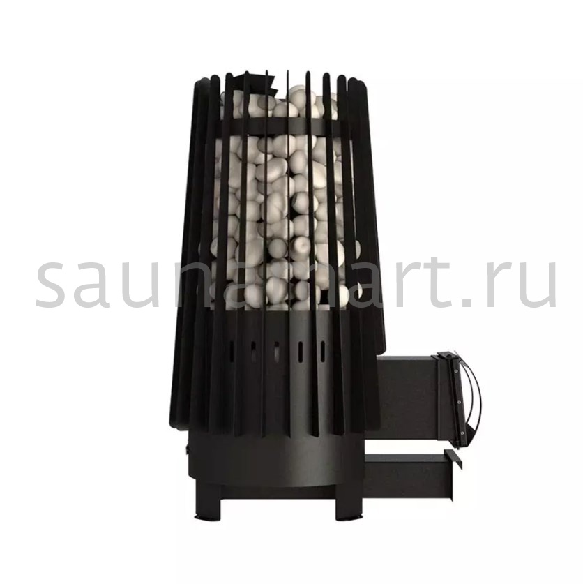 Эту модель создавали с учётом многочисленных пожеланий профессионалов русской бани и любителей качественного парения. При поддаче за 2-4 секунды под потолком формируется большое количество мелкодисперсного приятного пара. При этом вы можете выбрать один из трёх видов пара: 200 градусов из открытой каменки, 300-350 из первой воронки, 400 - 450 из второй воронки. Печь даёт мягкое тепло, камни защищают от инфракрасного излучения на 80%, а от конвекции на 70%. А ещё она вьюжит! Печь с профессиональными характеристиками и расходом дров не более 5,7 кг в час.