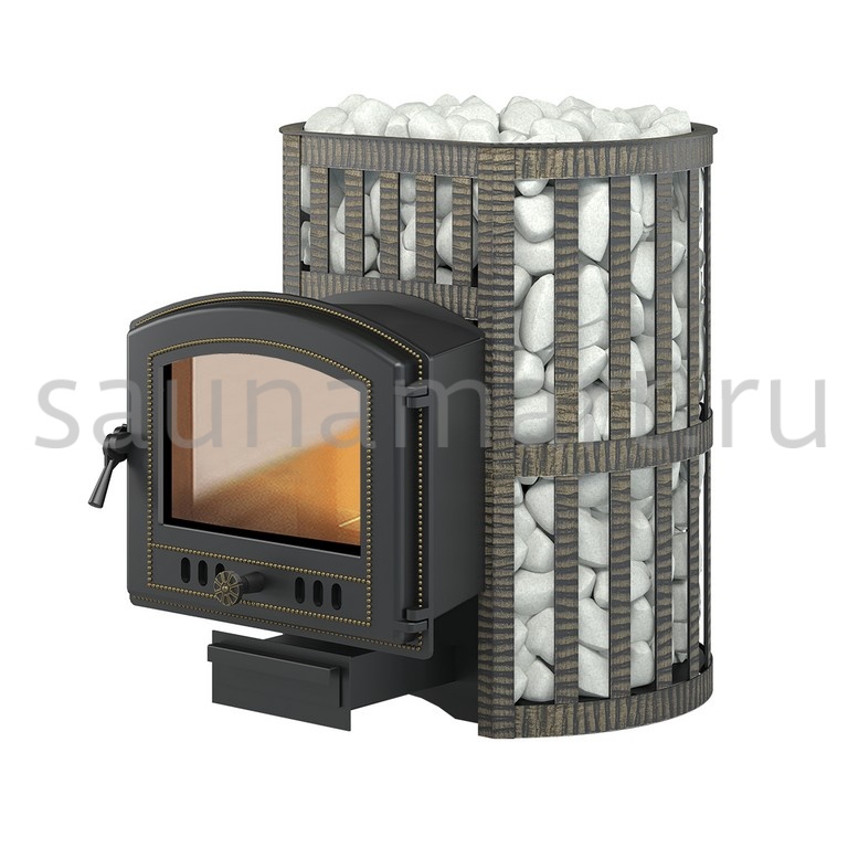 Банная чугунная печь Легенда Ковка 28 (224) укомплектована чугунной герметичной дверцей Везувий 224 с жаропрочным стеклом «SHOT ROBAX».  Конвекционно-вентилируемый кожух "Ковка" изготовлен из металлической текстурированной полосы покрашенной термостойкой краской и покрытая патиной «Бронза».