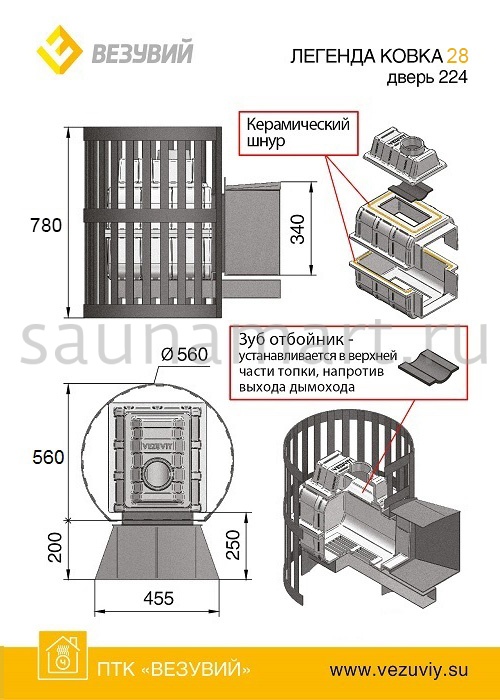 Печи для бани «Везувий» имеют несколько основных элементов: