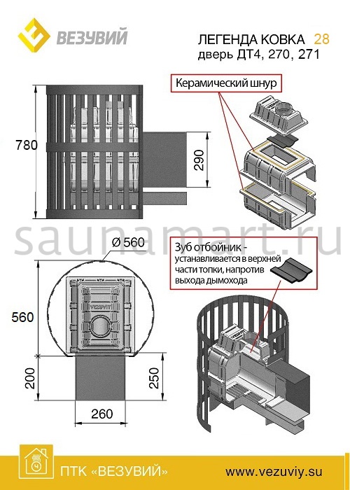 Печь дровяная ВЕЗУВИЙ Легенда Ковка 28 дверца 271