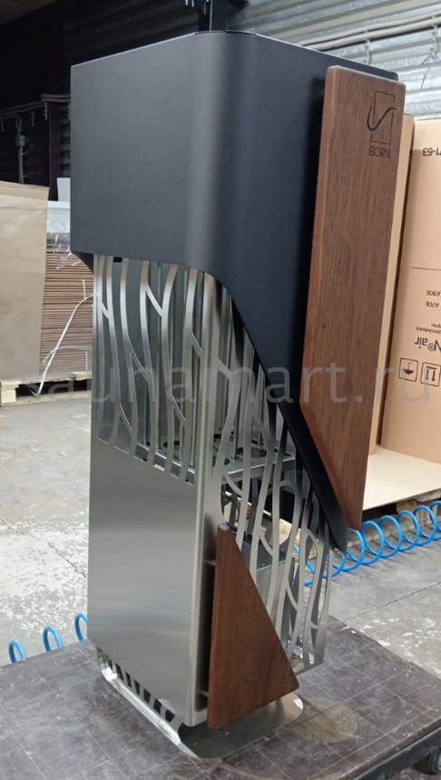 BORN AIR — напольная модель c необычным дизаи?ном для саун средних размеров. Корпус печи BORN AIR выполнен из матовои? нержавеющей стали AISI 304 с добавлением деревянного ограждения из ценных пород дерева. Данное сочетание придает каменке величественныи? вид. Большое количество камнеи? позволяет создать климат, которыи? доставит истинное удовольствие. Поддавая водои? на верх печи, можно регулировать качество пара от мягкого до жесткого. В печь вмонтирован ионизатор воздуха с кварцем и гималаи?скои? солью, вода испаряется от жара тэнов и увлажняет воздух, делая условия в парилке более комфортными. В парогенератор можно добавить ароматические вещества для усиления впечатлении?. Печь BORN AIR — идеальное решение для семеи?нои? сауны.