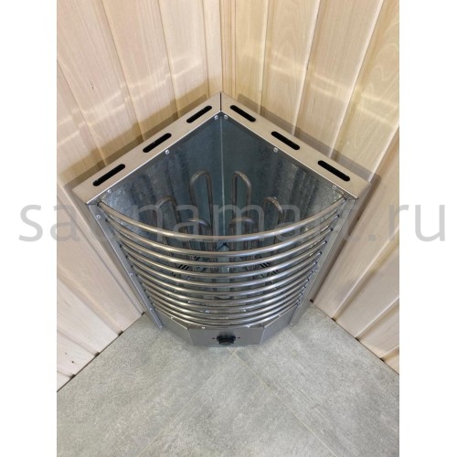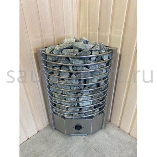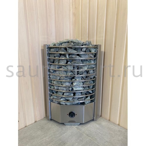 Электрическая печь ЭКМ 7 кВт "Угловая Олимпия Плюс" — угловая и пристенная модель с встроенным пультом управления, идеально подходящая для компактных бань. Производится в России (г. Челябинск) и подходит для помещений объемом от 7 до 11 м?.