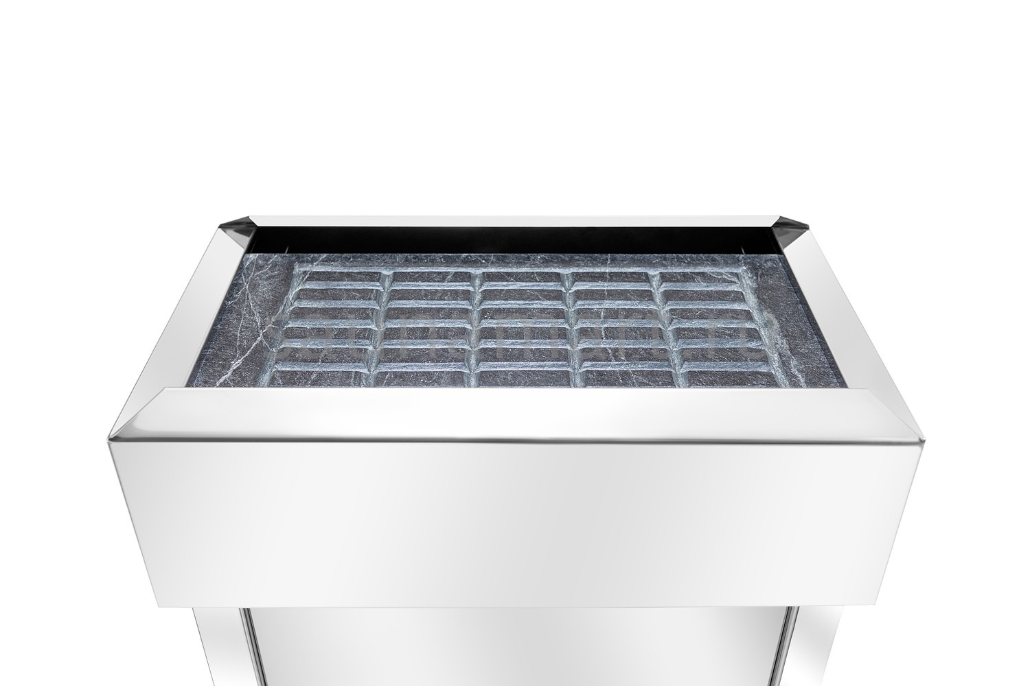 Электрокаменка оздоровительной серии в комплекте с горизонтальной нагревательной плитой из природного камня Талькохлорита высотой 6 см и массой 15 кг с распилами специальной формы, позволяет использовать её в качестве испарителя. На такой плите вода испаряется постепенно и создает благоприятный и комфортный климат в бане.