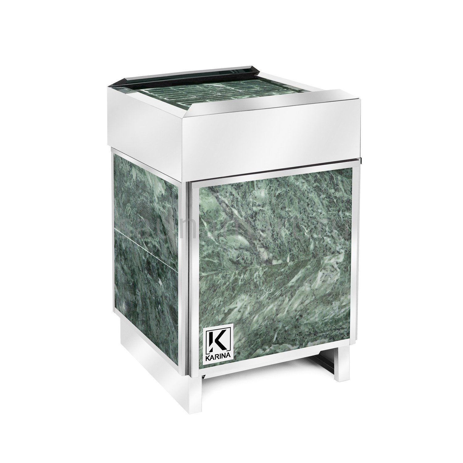 Электрическая каменка в облицовке из змеевика обладает повышенной прочностью и увеличивает полезные свойства банных процедур. Змеевик оказывает положительное влияние на мужскую потенцию, способствует повышению настроения и снижает риск вирусных заболеваний. Кроме того, камень нормализует давление и укрепляет иммунитет.