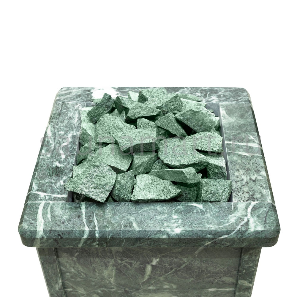 - Целебные свойства: Электрическая каменка со всех сторон облицована натуральным змеевиком, который стильно смотрится в парильном помещении. Змеевик, называемый «аптекарским камнем», обладает целебными качествами: оказывает обеззараживающий эффект, положительно влияет на кости, успокаивает и укрепляет иммунитет.