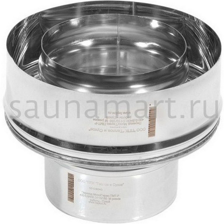 Переход Моно/Термо ПМТ-Р 430-0.8/430 D115/200 (М) — соединительный элемент для комбинированных дымоходных систем. Обеспечивает переход между одноконтурной (?115 мм) и двухконтурной (?200 мм) конструкциями. Внутренний контур изготовлен из нержавеющей стали AISI 430 толщиной 0.8 мм, внешний - AISI 430. Особенно эффективен при модернизации существующих дымоходных систем.