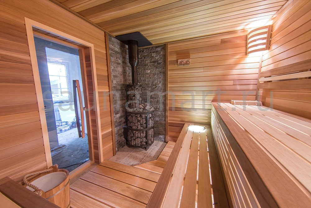 Полок из канадского кедра – это банный настил, изготовленный из древесины западного красного кедра, произрастающего в Канаде. Главные преимущества перед другими породами (липой, осиной, абашем) заключаются в уникальной устойчивости к влаге и перепадам температур благодаря природным антисептикам, которые предотвращают гниение и образование грибка без химической пропитки. Кедр обладает естественной легкостью, низкой теплопроводностью (не обжигает кожу при 90-100°C) и высокой долговечностью (срок службы 15-20 лет даже в коммерческих саунах). Его отличительные особенности – розовато-коричневый оттенок, шелковистая текстура и стойкий хвойный аромат с терапевтическим эффектом, который сохраняется десятилетиями. Цена на 25-40% выше, чем у липы сорта «Экстра», и в 2-2.5 раза превышает стоимость термоосины, что обусловлено редкостью сырья, сложностью транспортировки и премиальными эксплуатационными свойствами. Рекомендуется для элитных СПА-комплексов и аллергиков, так как не выделяет смолу при нагреве.