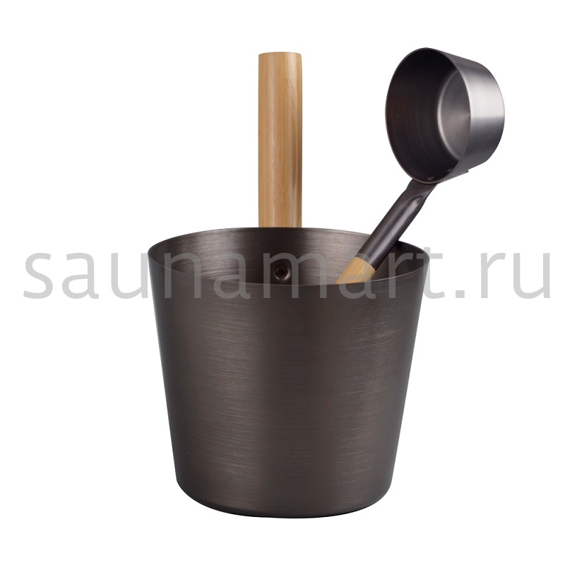 Ведро для бани и сауны изготовлено из алюминия и термообработанного бамбука.