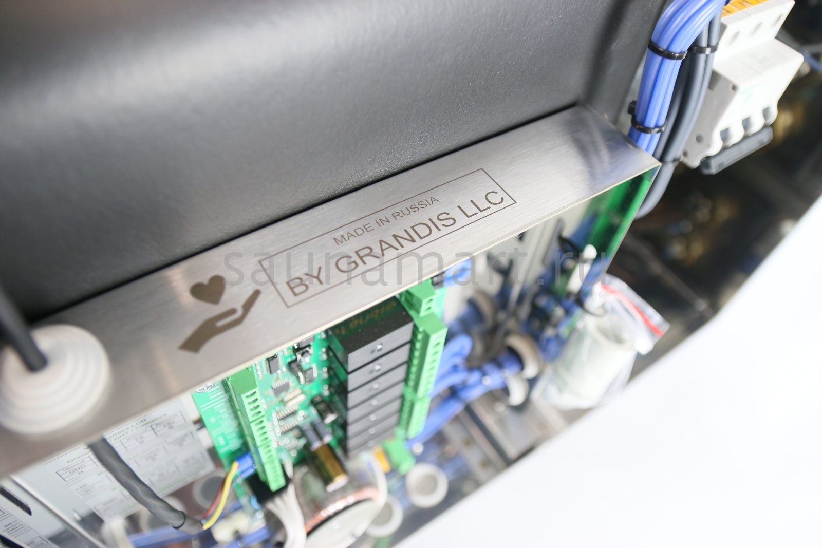 Управление увлажнителем Grandis DHT, осуществляется сложными и современными микроконтроллерами ATMEL. Мощная аппаратная база и позолоченная центральная плата, способствуют быстрой передаче цифровых программных алгоритмов между компонентами всей системы. Сенсорная LCD панель управления позволяет легко контролировать Влажность Вашей сауны или других помещений, LCD панель оснащён функциями позволяющий управлять: Удаленным стартом, 2-х зонным Светом, Ароматизацией, Вентиляцией, Авто очисткой и другими функциями. Цифровой датчик влажности оперативно анализирует влажность и включает пар при необходимости. Увлажнитель экономит Ваше время, а быстрый старт оптимизирует расход электроэнергии. Увлажнитель может включится в систему Умный Дом. Удобное меню на Русском, Английском и Немецком поможет индивидуализировать настройки системы.