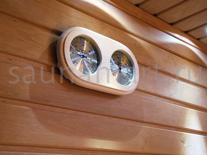 Термометр-гигрометр Sawo для саун сочетает в себе две полезные функции – измерение температуры и влажности воздуха. Вас непременно порадует качество и внешний вид прибора. Лучшим местом для установки прибора является наиболее удалённая стена относительно входа и печи. Укреплять его следует на высоте 1,5м от пола.