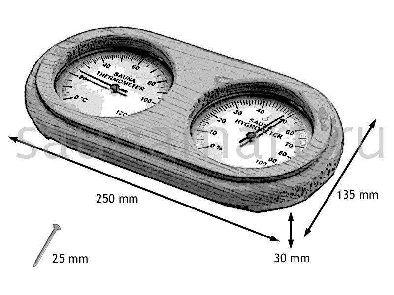 SAWO Термогигрометр 222-THР Закругленный термогигрометр Sawo отличается надёжностью и долговечностью. Он позволяет одновременно контролировать влажность и температуру в сауне. Корпус прибора выполнен из пиломатериалов лиственных пород. Термогигрометр впишется в интерьер любой сауны, украсив его. Температурная шкала термометра от 20 до 120 градусов. Материал: сосна Производитель: Финляндия