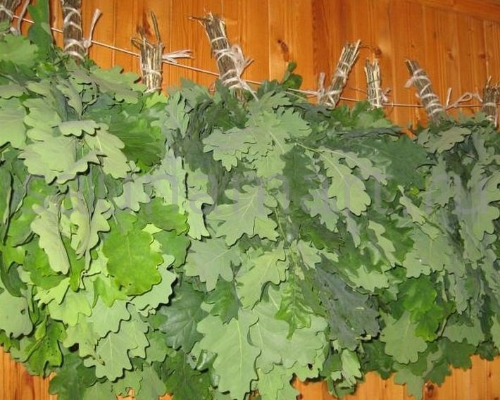 Листья и веточки дуба богаты эфирными маслами и дубильными веществами. Дубовый веник эффектно выглядит, ароматен, а благодаря особой форме резных и широких листьев он способен отлично впитывать пар.