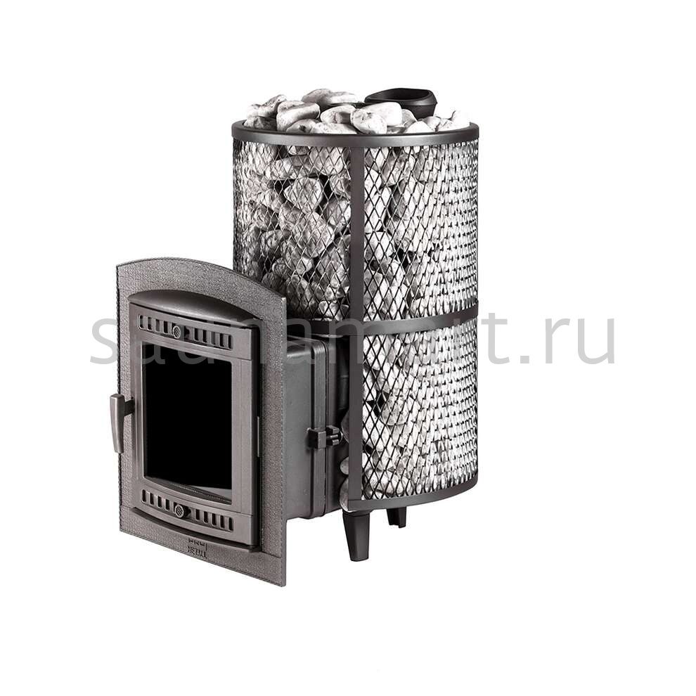 Компактная и экономичная модель. Кожух печи изготовлен в виде сетки из стали и полностью заполняется природными камнями, обеспечивая высокую динамику нагрева парильного помещения.