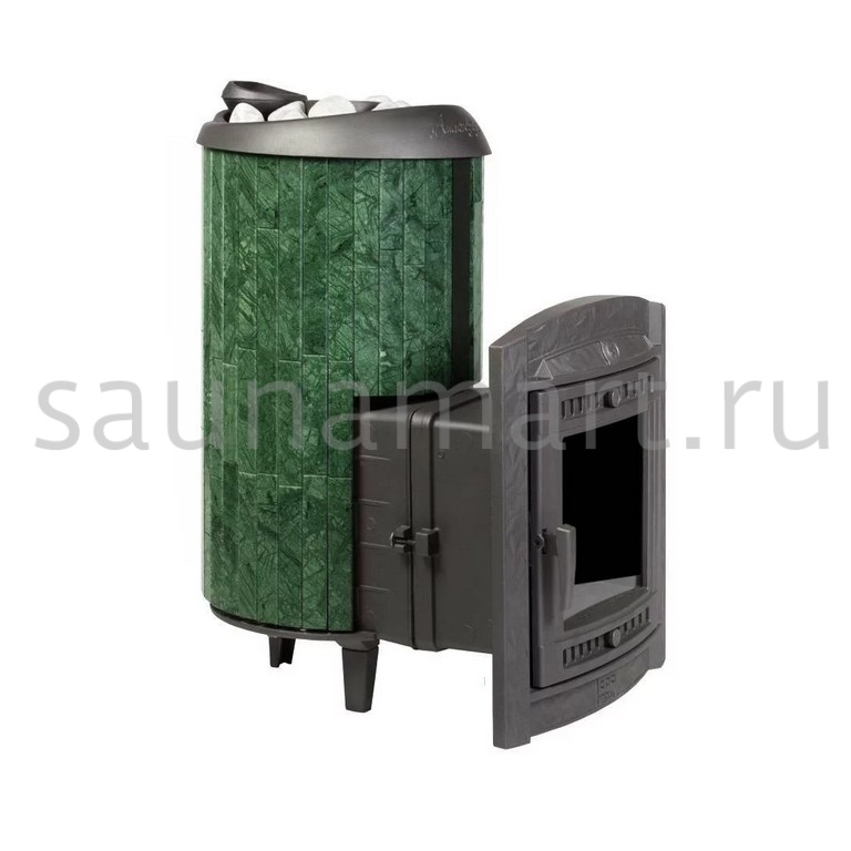 Модель с увеличенной каменкой и повышенной производительностью. Ламели по периметру внешней каменки не только обладают хорошими теплонакопительными свойствами, но и придают печи оригинальный внешний вид.