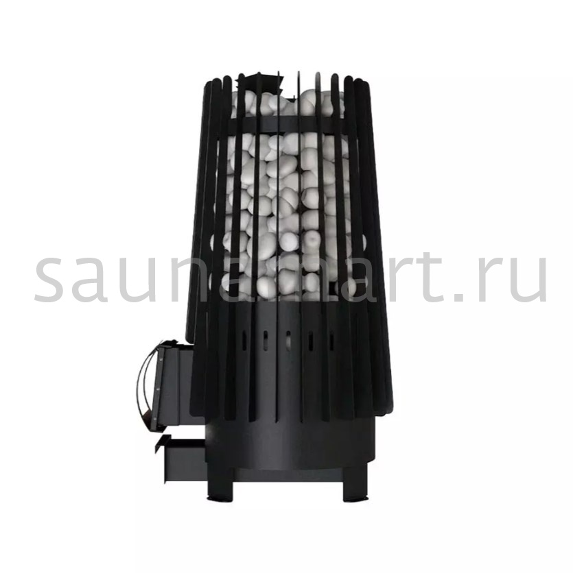 Печь топится из парильного помещения. Закрытая каменка вмещает 30 кг закладки камней. Температура в ней достигает 550 градусов. Две воронки для подачи воды размещены на разной высоте. Таким образом вы можете получить 3 вида пара от мелко дисперсного до видимого. Внутренняя каменка быстро восстанавливается, с такой печью можно проводить более 20 парений в день. В домашней бане эта модель порадует своих владельцев предсказуемостью и долгим сроком эксплуатации.