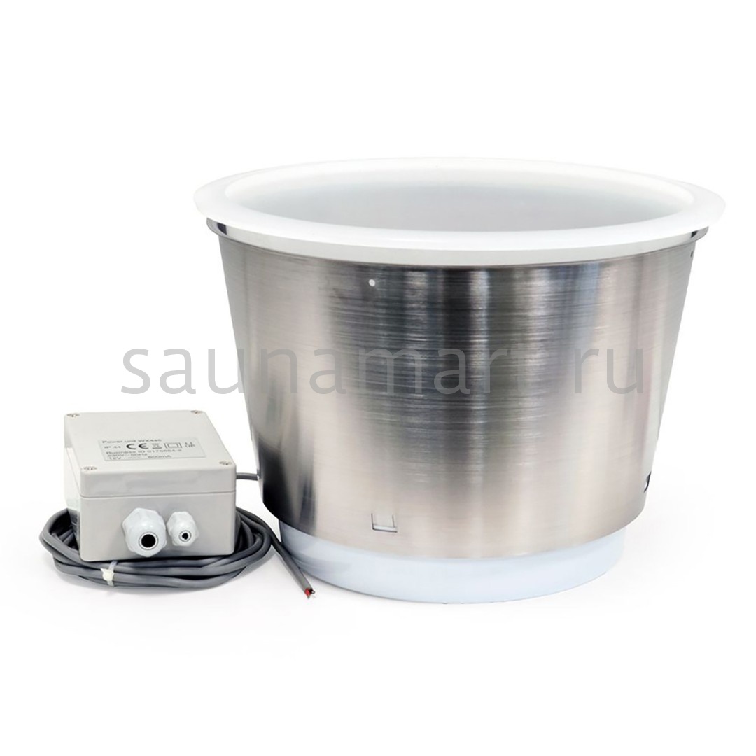 Шайка с подсветкой от Harvia - это современный и стильный способ доставки воды и света в парилку сауны. Основание шайки можен быть установлено на поверхность полка, или же шайка может быть встроена в полок. Светодиодный светильник в основании равномерно освещает шайку, а шайка также освещает окрестности - она изготовлена из оптического пластика с оптимальным рассеянием света.
